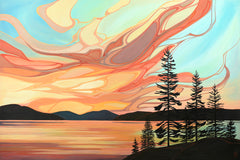 Canadian artist Erica Hawkes creates brilliant contemporary landscapes full of movement and color. Hawkes paints in a few different styles including ‘Cubist Impressionism’, separating the colors of a scene and painting the elements using geometric shapes and lines. Another style Hawkes uses is “Nouveau 7”, where she borrows elements from Canada’s famed “Group of Seven” and the beautiful flowing lines of the turn of the century Art Nouveau moment. Throughout her career, she has worked in a variety of media including graphite, acrylic, watercolor, India ink, and oil. In addition to working full time as a painter, Hawkes has also been an illustrator, portrait artist, teacher and photographer. Art is a true passion for Hawkes, and she enjoys every step of the process beginning with taking photographs for future works, to sketching and the final laying down of paint.