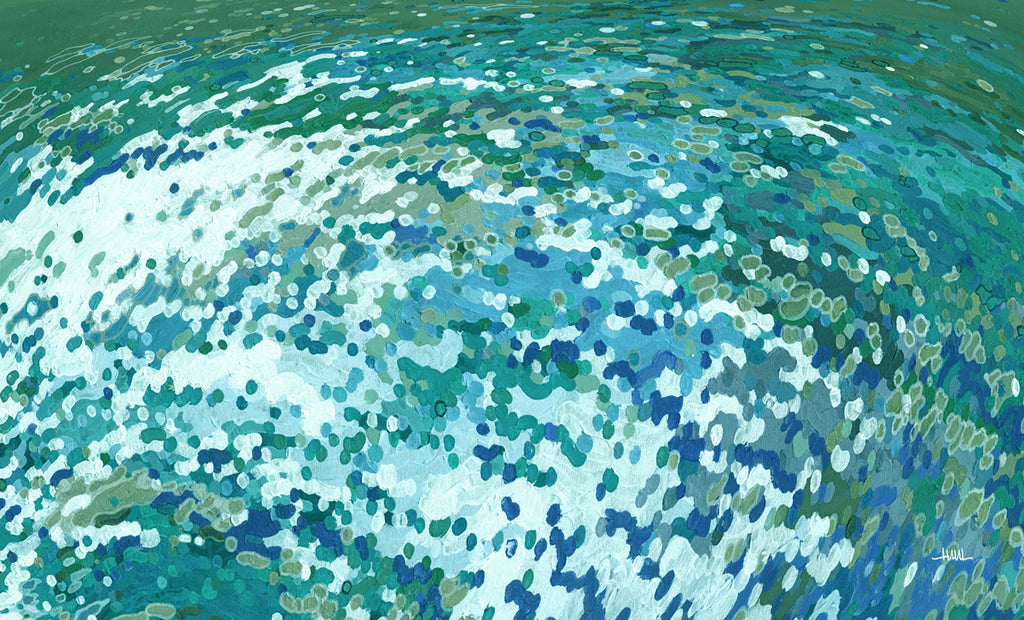 Tumbling underneath waves amidst effervescent aquatones, Margaret Juul's compositions are fresh and original expressions of the colors and patterns of water in motion. The artist uses her imagination to distill the kinetic essence of something never at rest. Irregular shapes of green and blue cover the canvas, reminiscent of the brilliant marine hues that convey water in 19th century Japanese woodblock prints. Close inspection reveals rough, textured surfaces from the thick application of media on linen, including oil, acrylic and oil pastel, reiterating the earthly and organic nature of her subject. Throughout her life, Margaret Juul has been privileged to enjoy a gift of inventive creativity. After training in fine art studies at Chicago’s Columbia College, she furthered her advanced education in interior design at The International Academy of Design and Technology. By 2007, she had accumulated an extraordinary portfolio, as well as acceptance into the prestigious International Interior Design Association; specializing in color, custom textiles, décor and fine art selection. One of the highlights of her diverse artistic career came in 2009, when the Iraq Museum International requested her image “Rough Wake” for the International Poster Exhibition at their museum in Baghdad. ”Rough Wake” would remain on display there for nearly two years. A collection of the 'Reflections' series was acquired in March 2014 and added to the newly remodeled NYU Surgical Center Endocrine and Diabetes Suite at the main patient facility; 550 First Avenue, NYC. The work was procured directly through exclusive NYU Artists Acquisitions Department. Not only was it was an honor, but also a high point in her career. Margaret’s artistic life has always been inspired by the Sea. From the shores of her New York birthplace and on to Chicago’s Lake Michigan — to the spectacular tropics of Tampa Bay where she currently resides, water has held an unwavering hold on her spirit — fluidity, intuition and reflective volatility.   As a successful professional artist and designer for more than two decades, she has cultivated a long list of devoted supporters. Her work displays prominently in a wide variety for settings — from celebrity homes, corporate lobbies, to commercial and hospitality sites internationally.
