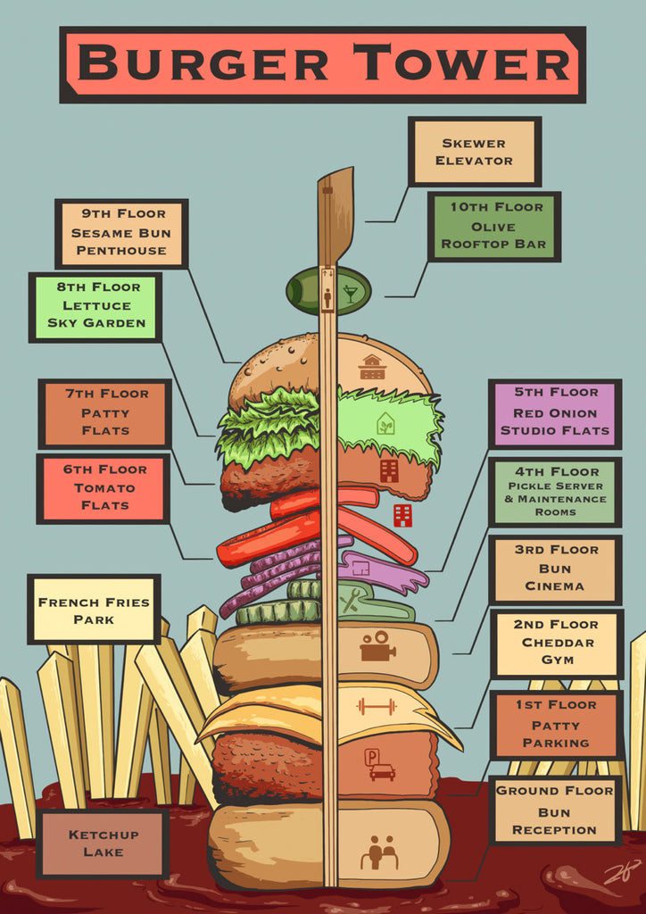 Languages + life science + art = Eugenio D’Adamo. What? Let’s elaborate the equation a bit. Born in Italy, Eugenio a.k.a. Zest Gest has always enjoyed doodling since early childhood. After completing a university degree in Japanese language and culture he unexpectedly ended up working in the life sciences industry during his years abroad. It was around the age of 35 that he decided to dust off his artistic skills and decided to turn them into a profession. Mostly self-taught, he loves creating surreal illustrations that range from clever wordplay to reimagining the basic elements of reality. Amidst it all, his passion for the organic world, particularly food and animals, quietly shines through. His motto? Smart art with a touch of wit.
