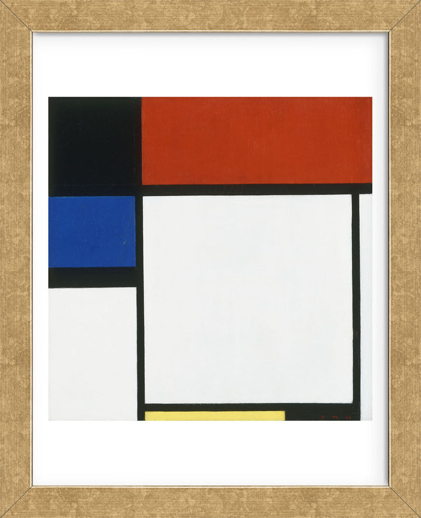 Born into a Dutch aristocratic family in Amersfoort, Piet Mondrian began his study of art in 1892 as a student at Amsterdam's Rijksakademie van Beeldende Kunsten. His earliest landscapes are rendered in an Impressionistic style but, possess the marked vertical and horizontal tendencies that foreshadow his mature paintings. Mondrian's work began to show the influences of Cubism in 1910 after an exhibition at the Stedelijk Museum in Amsterdam that included works by Picasso and Braque.In 1912, the artist moved to Paris where he continued to refine his style, continually exploring increasingly sophisticated compositions. In his paintings, Mondrian strove to achieve a universal form of expression by reducing form and color to their simplest components. The artist termed his work "Neo-Plasticism" and believed: "it is the task of art to express a clear vision of reality." Using only primary colors and basing his compositions entirely on rectangles, Mondrian painted increasingly stark, structurally harmonious compositions with an unrivaled chromatic purity.Mondrian moved to New York in 1940 to escape the disruptions of World War II. Energized by the pace of city life, the artist was extremely productive and completed a large number of paintings. Mondrian's late works, executed during his years in New York, use vacillating color and grid-like patterns to evoke the fast-paced rhythm of city streets. He is regarded by many as founder of abstract art.